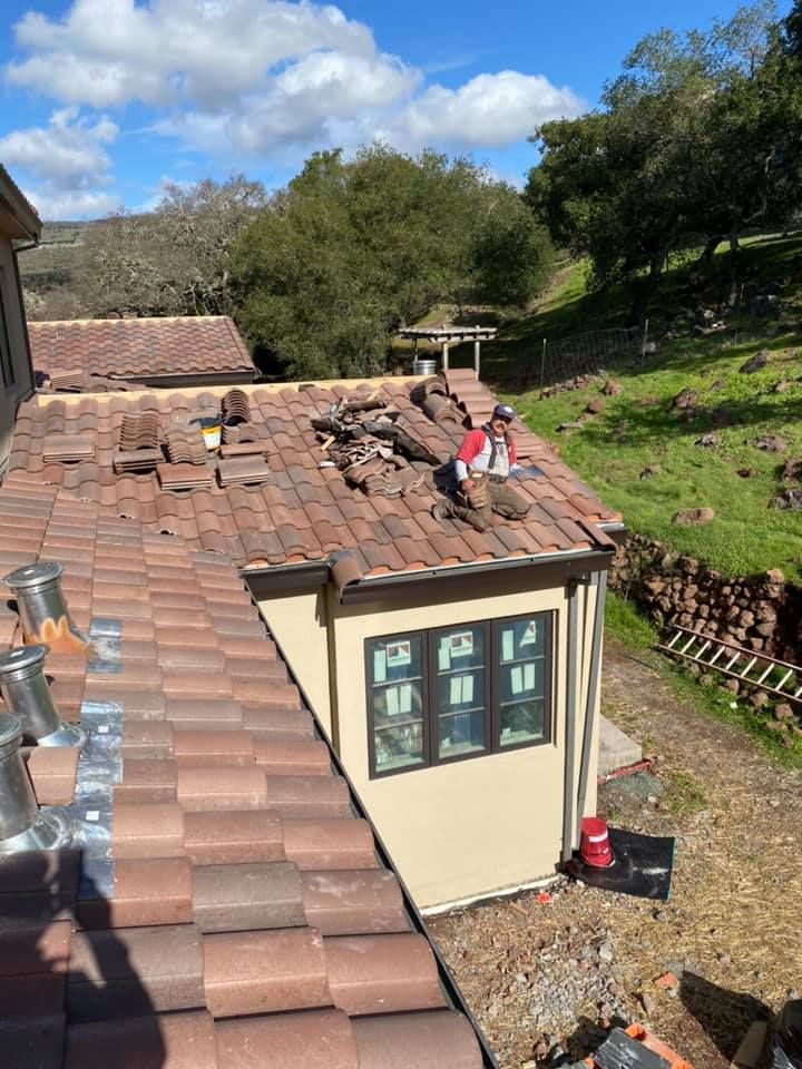 Custom Tile Job. Two-piece Redland Clay tile with Copper gutters and copper flashing.